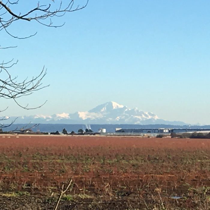 Mount Baker on a sunny day – dominates the view eastward. Thanks to Luke Johnson for sending Ladner photos.