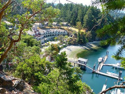 Poet’s Cove Resort at Bedwell Harbour. Stay for the night, enjoy the steam cave, outdoor pools and hot tubs, and dinner overlooking the harbour
