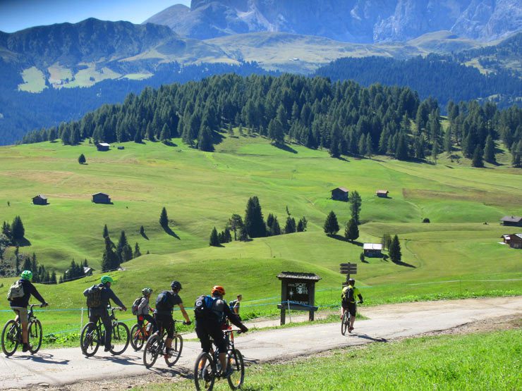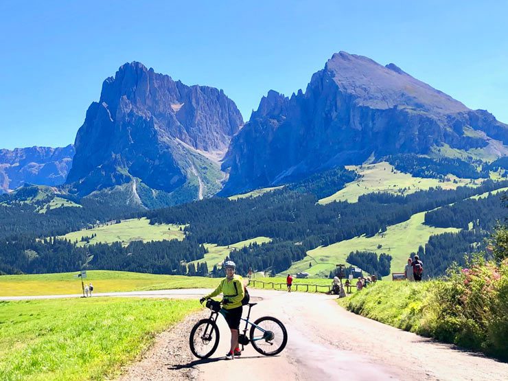 We LOVE cycling in the Dolomites! Our favourite location in northern Italy is the Val Gardena and the Alpe di Siusi, the largest alpine meadow in Europe. The plateau is also known as the Seiser Alm in German and Mont Sëuc in Ladin. The area is a UNESCO World Heritage Site, known for its breathtaking scenery and iconic Dolomite peaks.
