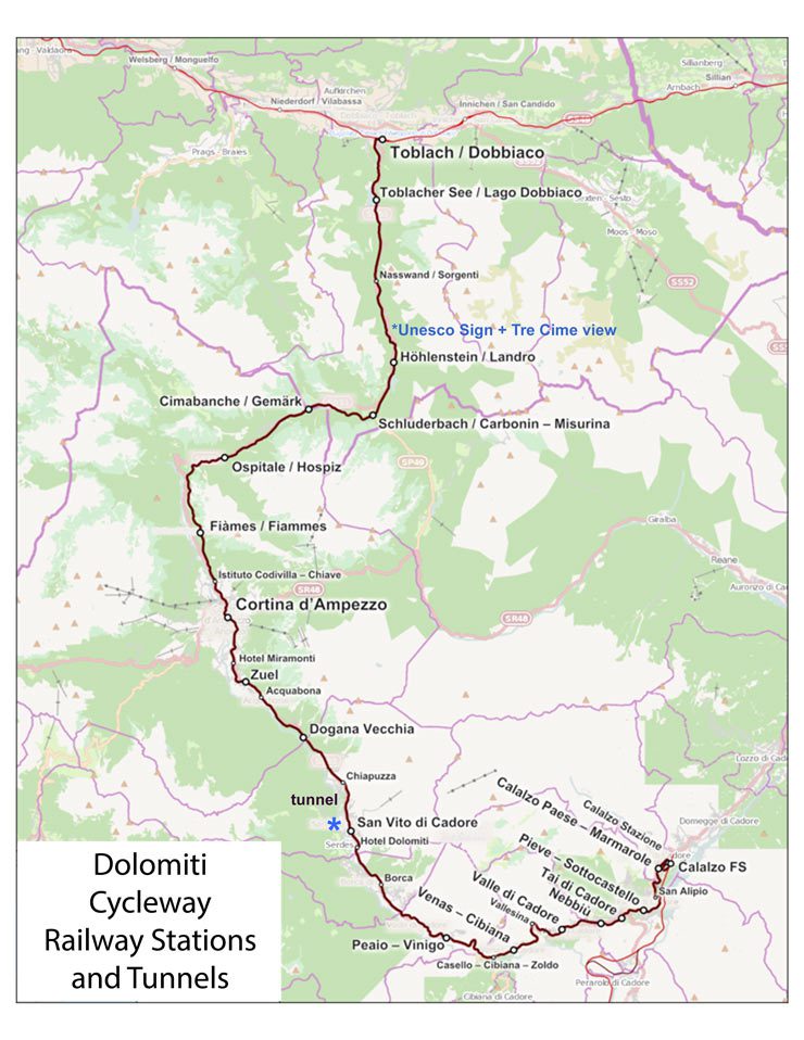 - Dobbiaco/Toblach – Arrive by train and start your ride – bike rentals and supplies are available in town.