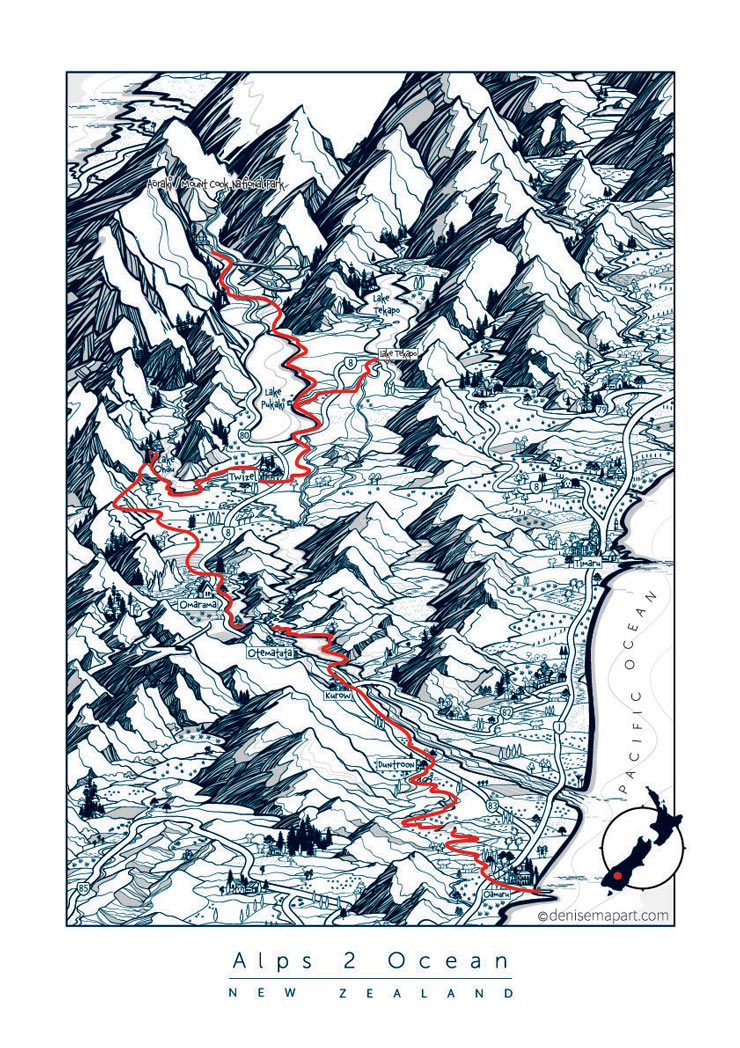 Visit artist Denise Nel to see her wonderful handrawn maps which highlight the best walking and cycling trails in New Zealand.