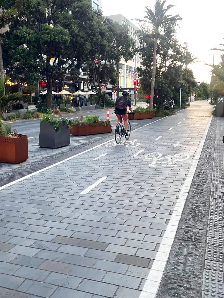 Our guide led us along the Light Path, a bright pink elevated bikeway that has become one of Auckland’s signature cycling experiences. From there we wove through quiet neighbourhoods, leafy parks, and vibrant streets. It is the kind of local perspective we love — seeing how residents live, and discovering areas we never would have found on our own.