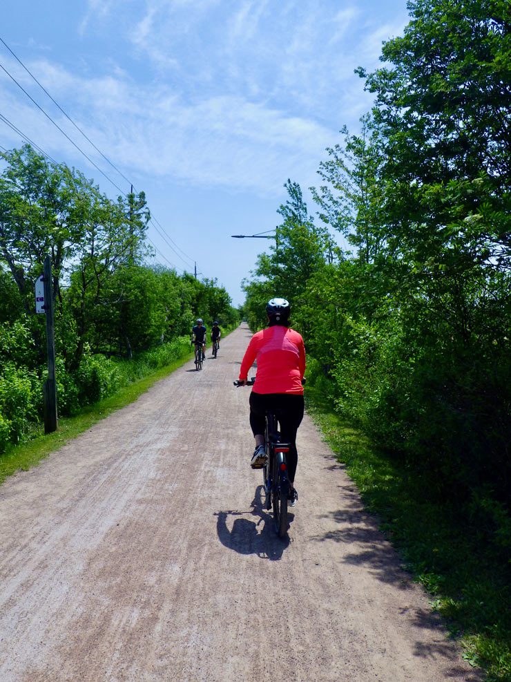 Our favourite section of the trail was the peaceful ride from Morell to St. Peter’s Bay, with views of salt marshes, farmlands, and glimpses of the bay.