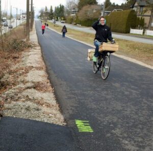 Arbutus Greenway temporary path takes shape. Thanks to the Vancouver Courier for this photo of early days on the path.