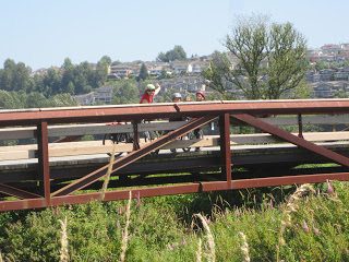 2. Walk bikes on Garden Trail, note there are stairs with a bike rail at the east end.