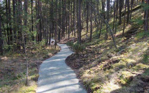 The mountain views get bolder as you travel The Great Trail from Kimberley, down through the Rocky Mountain Trench beyond Cranbrook toward the Rockies at Wardner. There are over 150 km of trails in this region making it the longest linear greenway cycling route in the interior of BC. North Star Rails to Trails is an easy paved route and the Cranbrook Community Forest has many trails to explore. The Chief Isadore Trail was envisioned, fund raised and constructed by Trails BC/Rockies. The trail is rustic and forested with some grassland sections. There are options for everyone from short fun sections such as the Mayook Trail to the whole combined route of 72km.