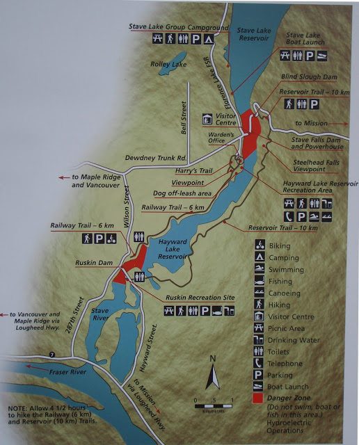 If you are looking for an easy trail near Mission try the Railway Trail along Stave Lake and the Hayward Reservoir. The trail is easy on a hardpacked trail that follows an old rail bed. This ride makes a great family day: a bike ride and history lesson all in one. Park at the Stave Falls BC Hydro Visitor Center and enjoy a tour of the historic dam and power generating facility, then climb on your bikes for an easy ride!