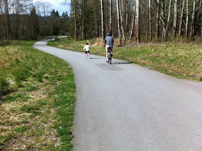 The 5 km pathway is completely off road — perfect for beginning riders. Yes there are a few hills — well really just a gentle rise, but it’s easy and a good opportunity for learning and going clockwise was the best way to go.