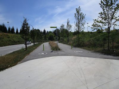 Just off Portside Greenway are two great parks to explore. Ride the trails at New Brighton Park — mountain views, freighters loading grain, and tugboats working. Explore the easy greenways in Hastings Park, play at Plateau Park, discover the Sanctuary Pond, reflect at Momiji Gardens and enjoy the Italian Il Giardino rain gardens. Have a family picnic at the Italian Rain Garden, relax beside The Sanctuary Pond, reflect in Momji Gardens and play at Plateau Park. Ride past the horse barns and follow the TCT along Creekway Park to New Brighton Park for a swim in the pool. A great way to spend the day for kids of all ages.
