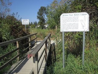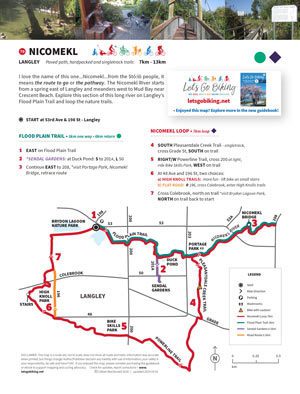 Brydon Park Nature Lagoon – walk the nature trailPleasantdale Creek Trail – hard packed with a few small hillsOh yes…I love ducks…but this picture is your signpost – head south to Sendall Gardens on the trail to the right of the duck pond then south on 201A StreetTake this bridge for Pleasantside Trail