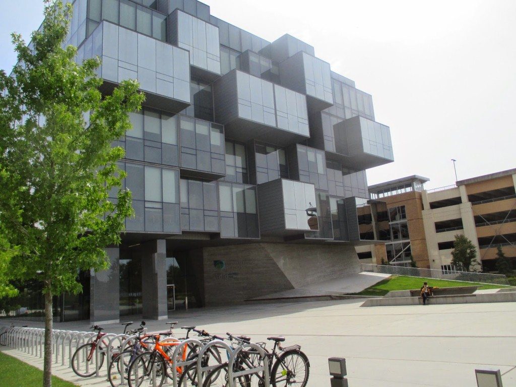 Cantilevered pods of the Pharmacy building link here: http://www.pharmacy.ubc.ca/aboutus/building