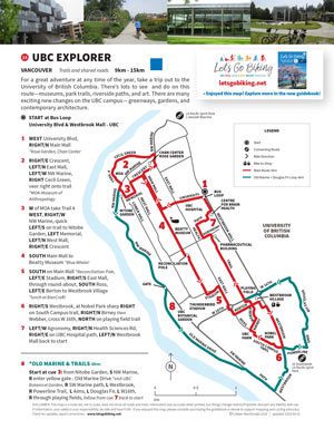Pacific Spirit Park has dozens of trails to explore. They are wide and hard packed — perfect for cycling. You could cycle in this park for hoursThroughout the UBC campus there are changes afoot. New pathways, cycle paths, playgrounds, contemporary buildings and people places.
